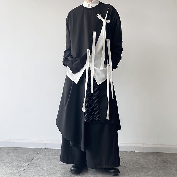 [X-MEN] Yohji Yamamoto Men's Dark Series Irregular Pants Trendy ins Japanese Miscellaneous Style Ribbon Kendo Samurai Culottes Summer