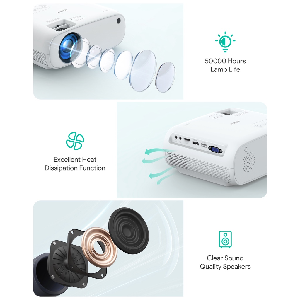 Aukey RD-860 Wi-Fi Mini Projector with 1080p Resolution Smartphone Screen Sync (24 months warranty)