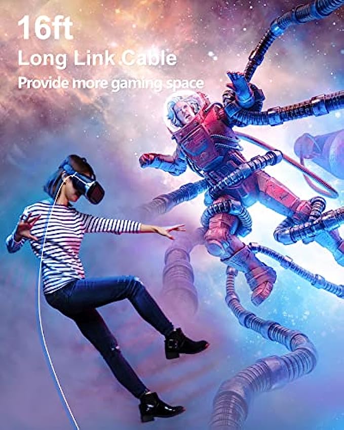 【16ft Long Link Cable】16ft (5 meters) long link cable can provide more gaming space, and is not easy to get tangled. You can move flexibly without being restricted when you are immersed in the Virtual Reality game
