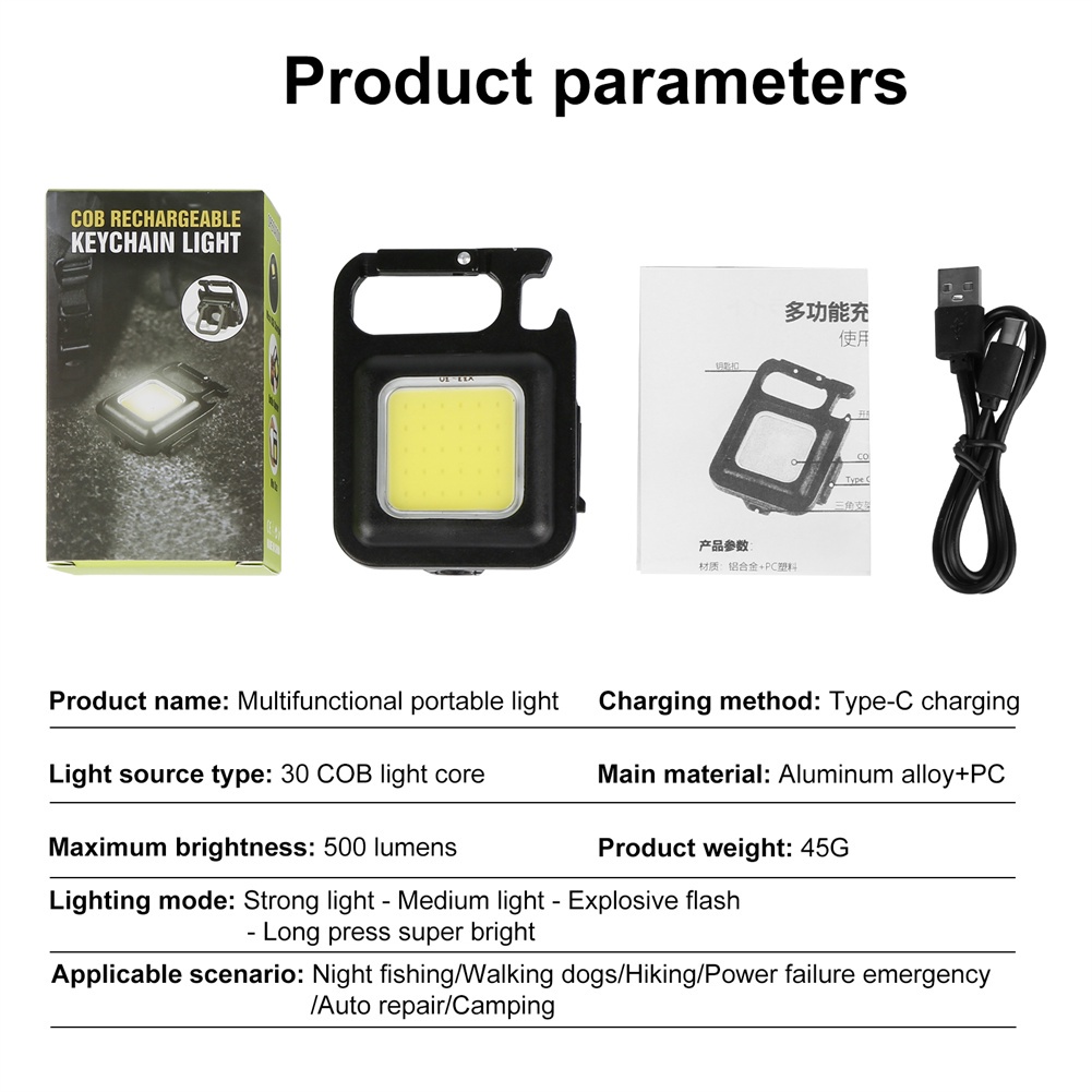 Flashlight Usb Rechargeable Torch Light Keychain Led Working Lamp Highlight Cob Lamp Outdoor Lighting Light 【bluey】
