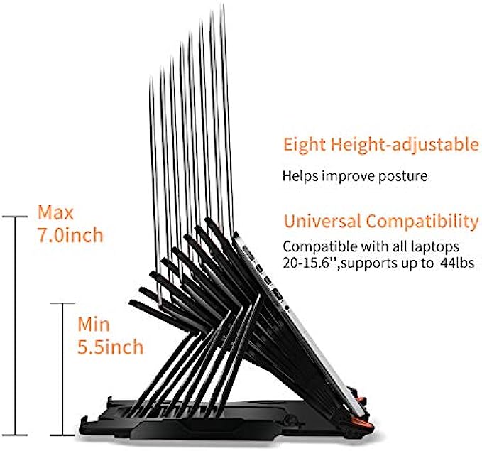 • Durable - Made of lightweight ABS with non-slip rubber surface pads to keep laptop in place, strong and reliable, not easy to fade. Compatible with all laptops 10-15.6”, durable enough to support up to 44 lbs (20kg).