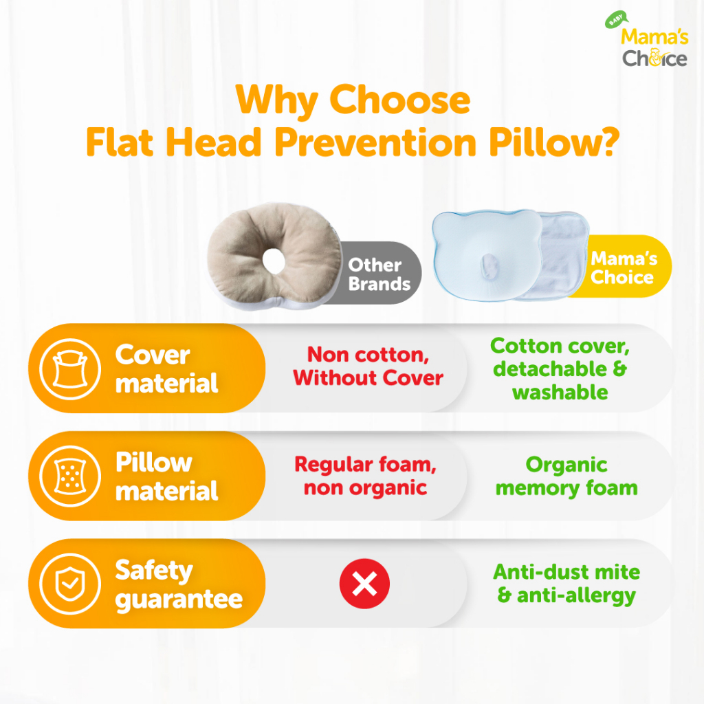 Mama's Choice Flat Head Prevention Pillow (Head shaping organic memory foam baby and infant pillow)