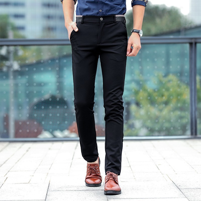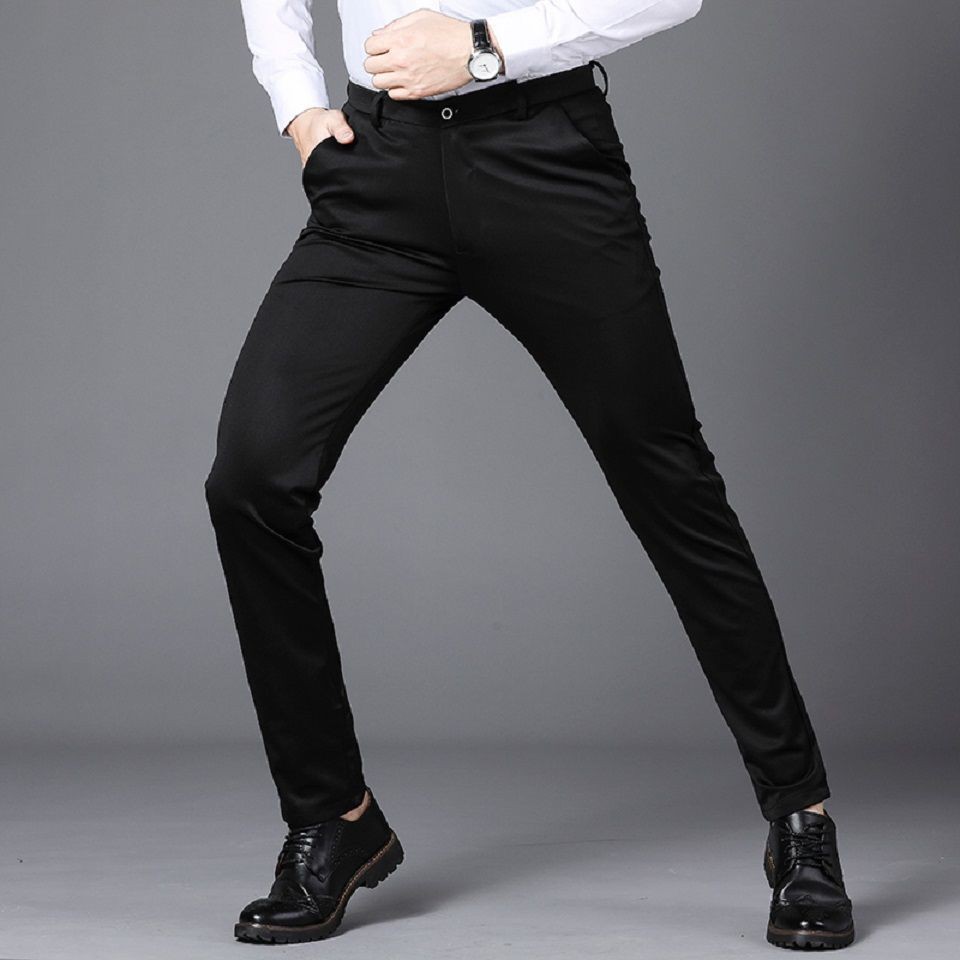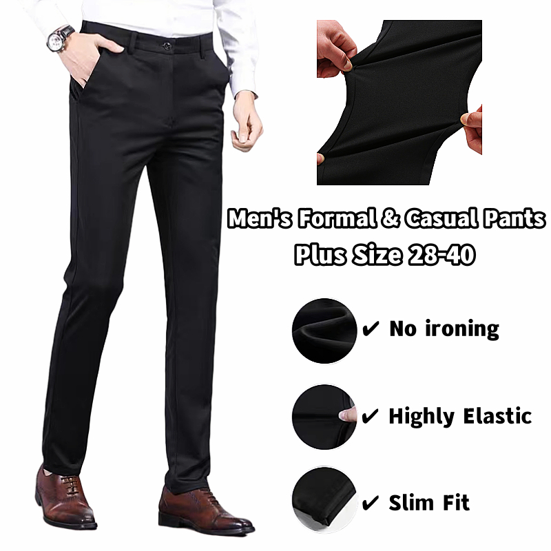 Men's CEO Office Formal Suit Pants Non-ironing Stretchable Slim Fit Business Wear Casual Long Black Pant