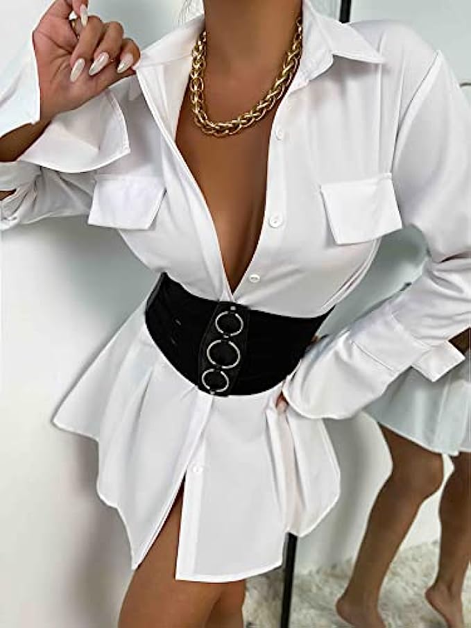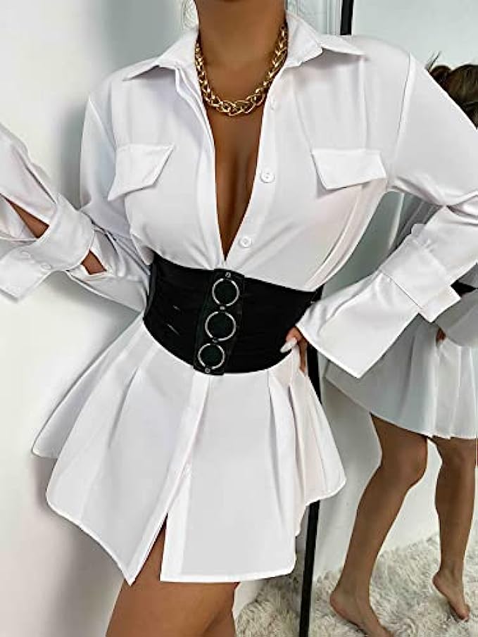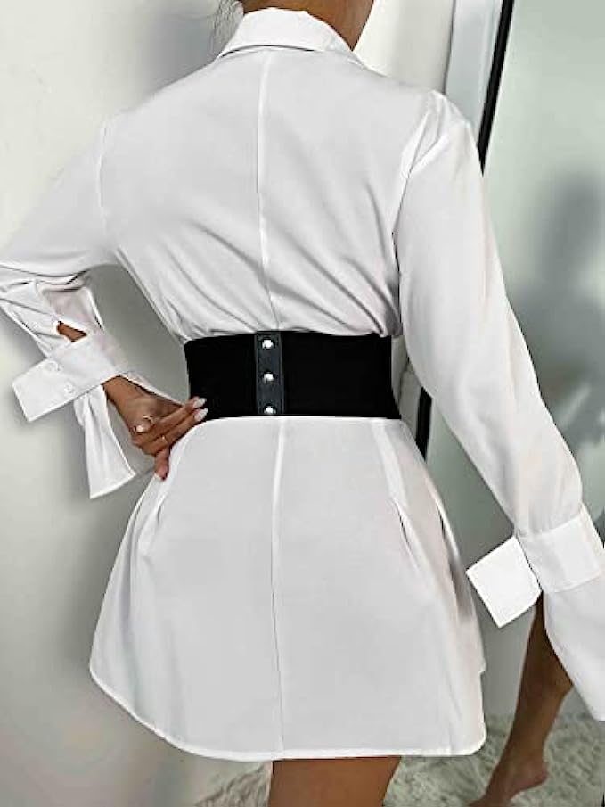 • This 7 inch wide elastic corset waist belt has a silver press button fastening and stretchy elastic,
