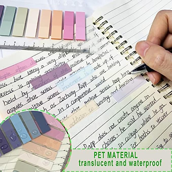 • TRANSLUCENT & WATERPROOF:Index tabs are made of PET, translucent and waterproof. Transparent degin to meet the need for note-taking and help you easily annotate on the page without obscuring the important message.