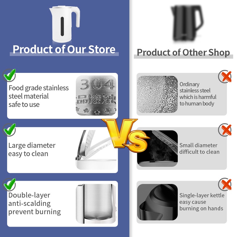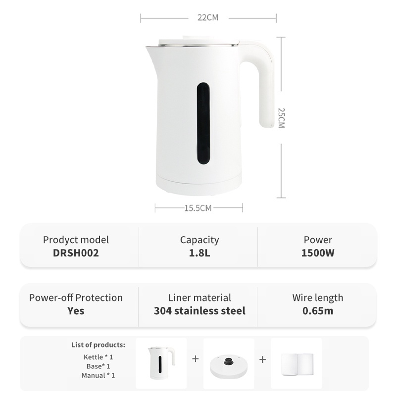 Simplus Electric Kettle 1.8L 304 Stainless Steel 1500w Automatic Power-off Boil-Dry Protection