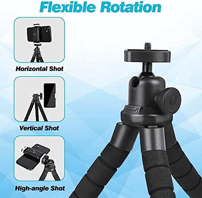 • 【Functional Accessories】 Comes with an upgraded universal phone holder (works for cellphones up to 5.23 inches wide, a wireless Bluetooth remote (compatible with most cell phones and controls up to 30 feet away). By a standard adapter screw thread, it is compatible with digital cameras and GoPro.