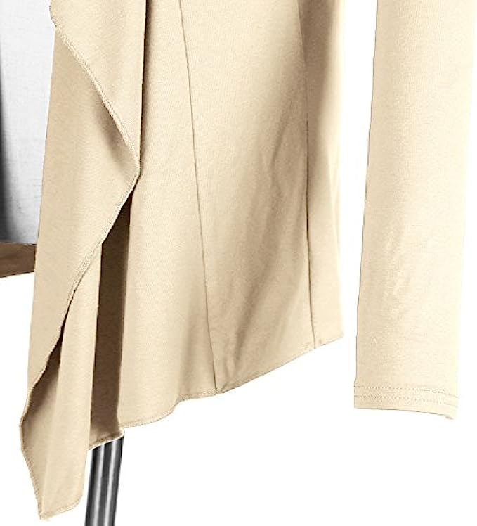 95% Viscose, 5% Spandex Imported Hand Wash Only Machine wash cold / hang dry / hand wash recommended Basic and stylish outfit,shawl collar drpaed open cardigan,asymmetrical hem droops naturally folds,brings you slim look Lightweight,skin-friendly,soft and comfortable fit,add this solid cardigan to any outfit to add warmth and style to your look Wear it with a tank top or shirt as undershirt,also perfect pair with jeans,leggings to elongate your silhouette and flatter your figure Suitable for casual and formal occasions,such as working,party,beach, home,daily wear and other activities