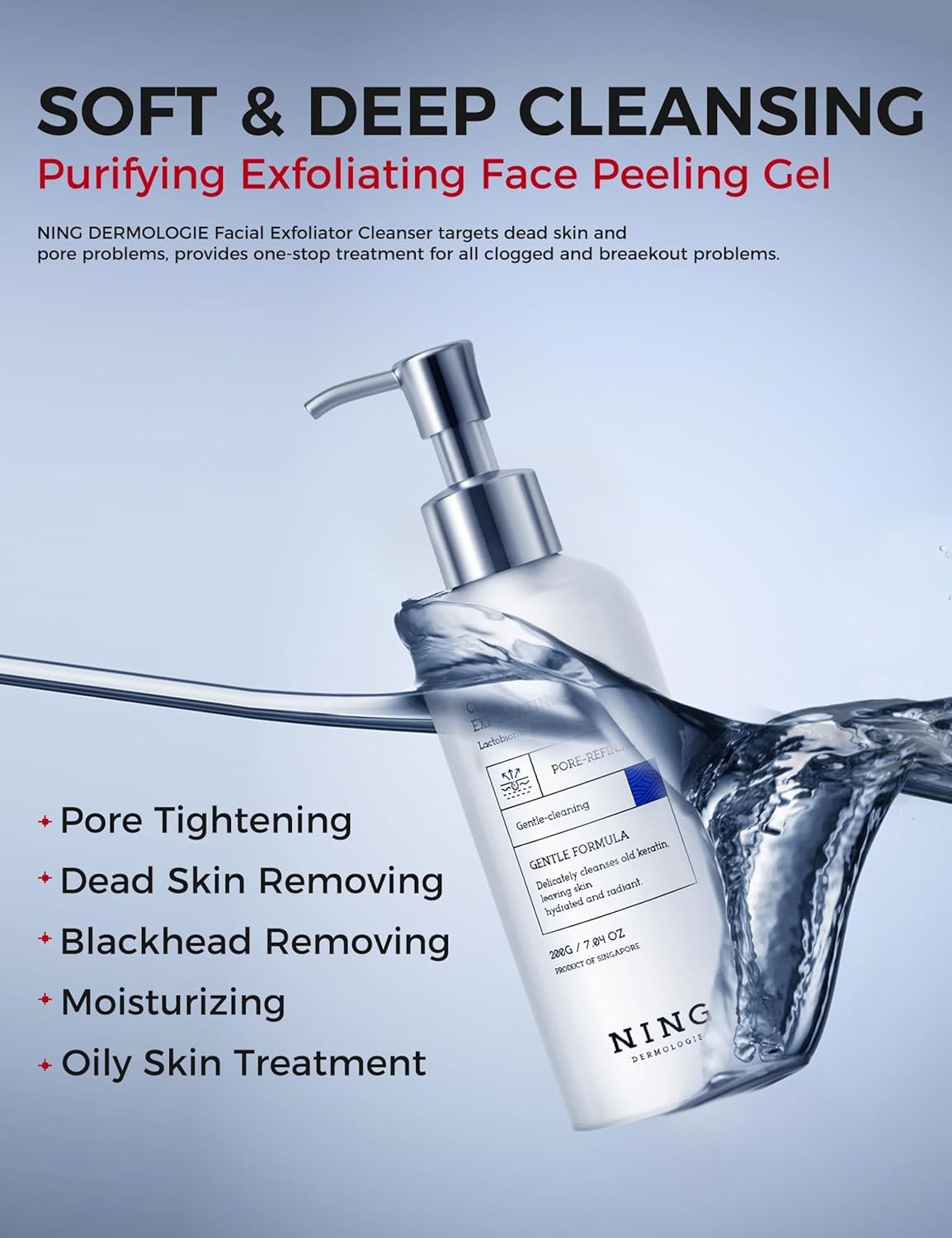 GENTLE YET EFFECTIVE FACE EXFOLIATOR: NING DERMOLOGIE Peeling Gel combines AHA & PHA for a balanced exfoliation. AHA high-effectively dissolve dead skin cells, unclogs pores, and accelerates skin renewal, while PHA, a third-generation fruit acid, provides more gentle exfoliation, deep hydration, and antioxidant protection, improving skin texture. With continued use, pores appear more refined, and skin feels clean and refreshed without dryness or tightness.