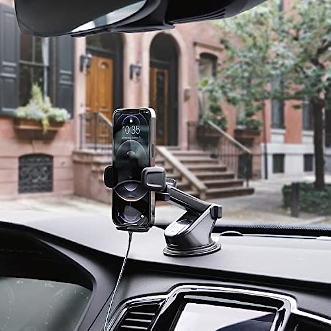 EASY ONE TOUCH MECHANISM: Press the locking side arms with a quick one-handed motion, and place your phone against the trigger button. The mount’s arms will close automatically, holding your device securely while you drive. Mount or remove your phone in seconds with the patented Easy One Touch Mechanism. WIDE COMPATIBILITY: New larger Easy One Touch button, with a universal cradle that fits smartphones and cases of any size. MAGNETIC CORD ORGANIZER: Keep charging cables neatly organized with the magnetic tab located near the bottom foot TELESCOPIC ARM: The improved telescopic arm now extends from 5 inches to 8 inches (as opposed to the Easy One Touch 4 which only extended to 6.5inch) and pivots 260 degrees. This enables a myriad of customized viewing angles while you’re on the road. ADJUSTABLE BOTTOM FOOT: You can easily and securely adjust the bottom foot by squeezing the spring button.