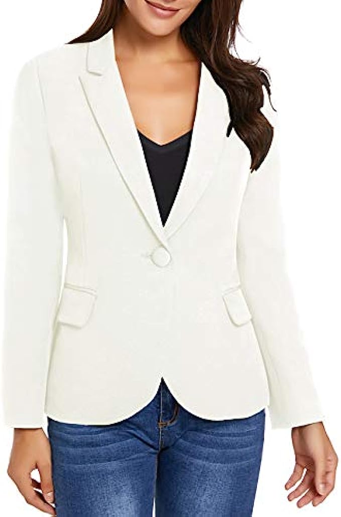 100% Polyester Imported Button closure Hand Wash Only Womens fitted blazer are highly versatile and customizable, making them easily go with many different outfits. Comes with soft and comfortable fabric, this cute jacket is perfect for your office time or daily wear. This blazer jackets for women business casual with shoulder pads, two buttons closure is basic and stylish. Wearing this womens lightweight blazer will make you stunning no matter for a casual or a professional look. Point collar design and two funtional side pockets on this women blazers for work make it a staple pieces to complete a fashion outfit. luvamia work blazers for women is soft and flexible but still have great structure.