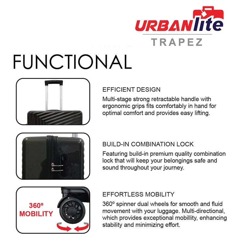 (SG Ready Stock Urbanlite TRAPEZ 20" / 24" / 28" 360° Spinner 8 Wheels ABS Hard case - ULH9913(Universal Traveller)