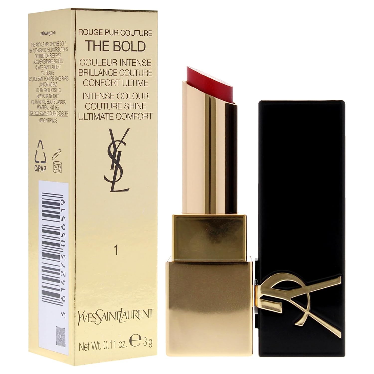 YVES SAINT LAURENT Rouge Pur Couture The Bold Lipstick - 1 Le Rouge for Women - 0.11 oz Lipstick